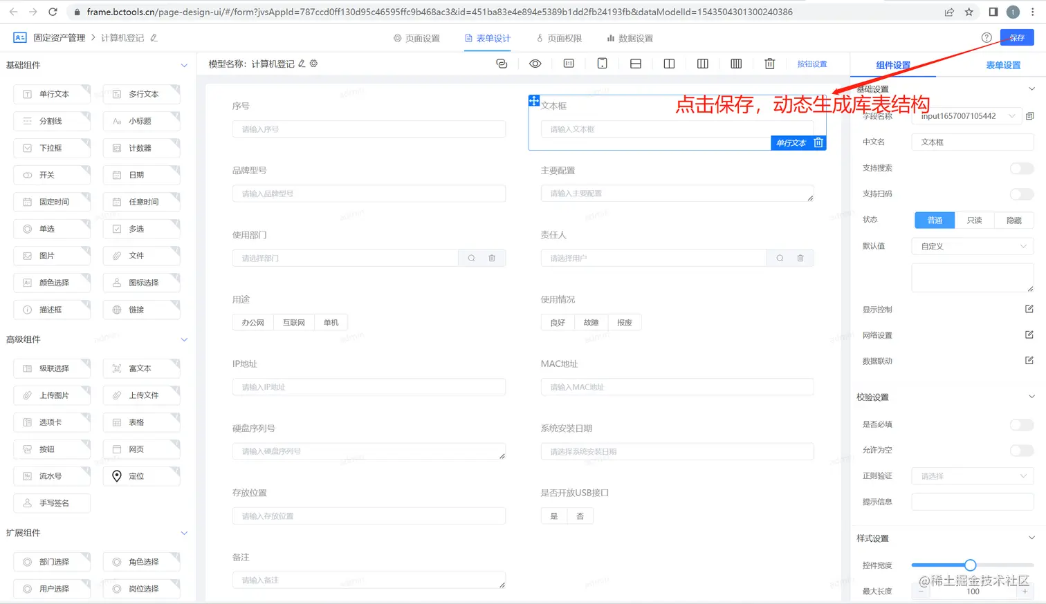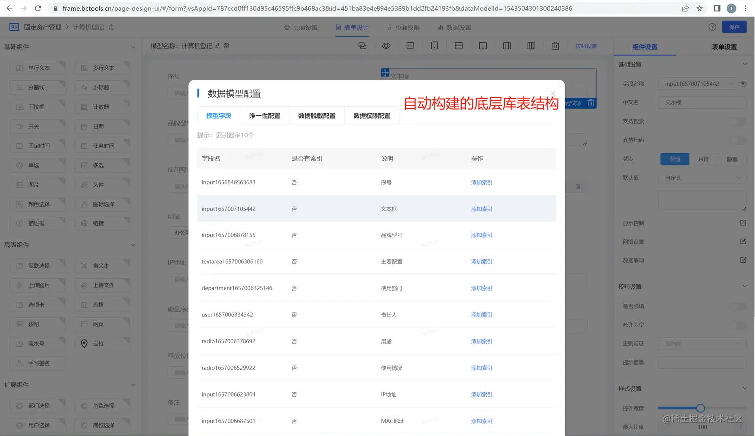 基于表单自动构建库表结构: