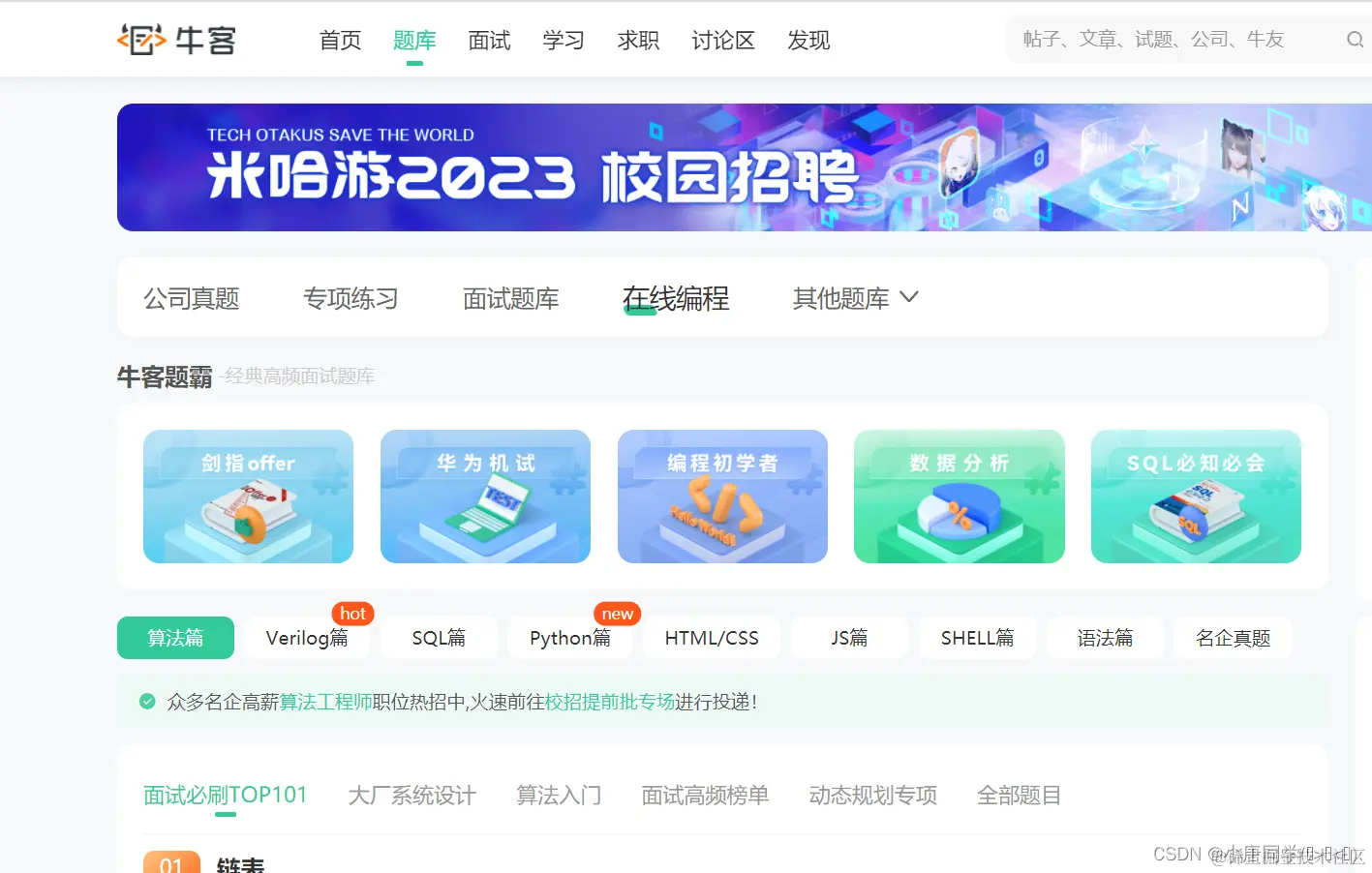 博友们如果也是新手入门数据结构我希望大家可以多加练习 数据结构题库在牛客网就有已经给大家附上链接,可以直接点击跳转:刷题点这里
