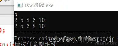 直接得出最后结果:0 1 2 3 4 5 6 7 8 10