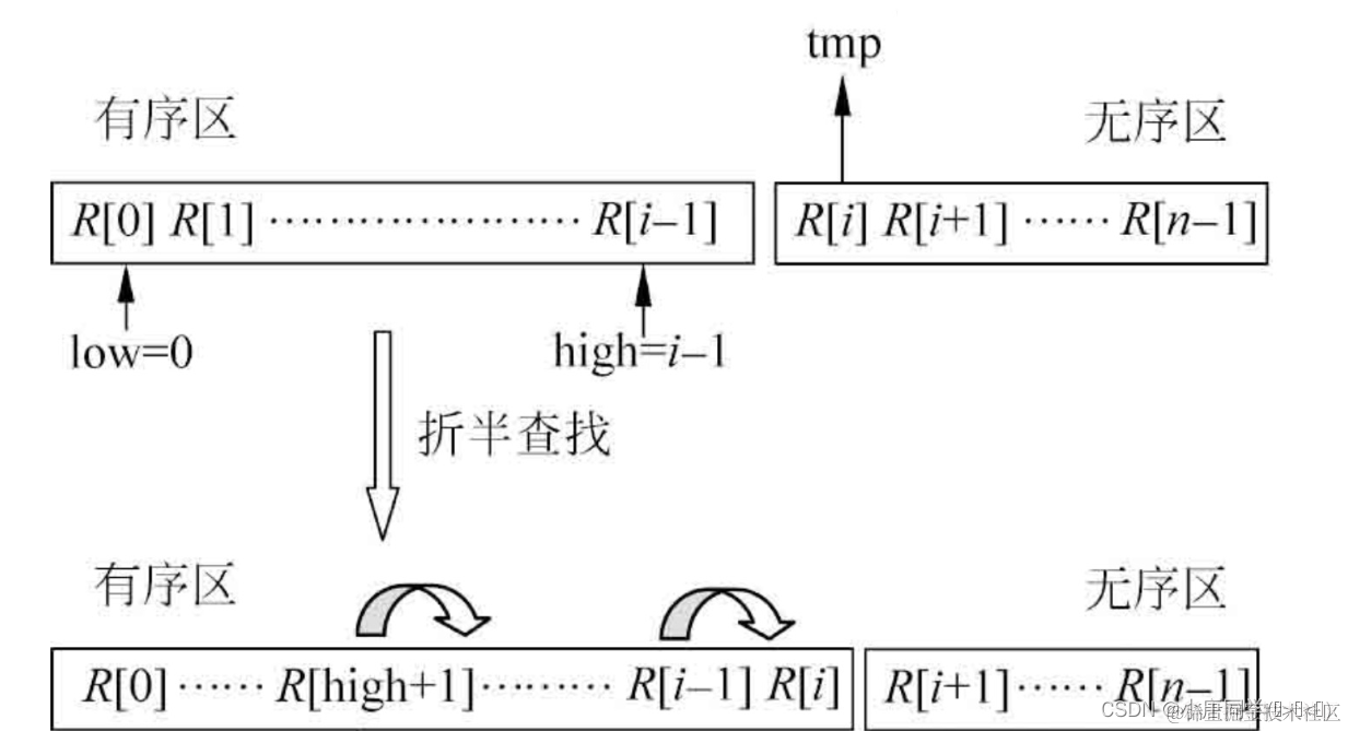 3.已知前i个元素已经有序排列,则第i+1个元素(无序区第一个---后文称为目标元素)
