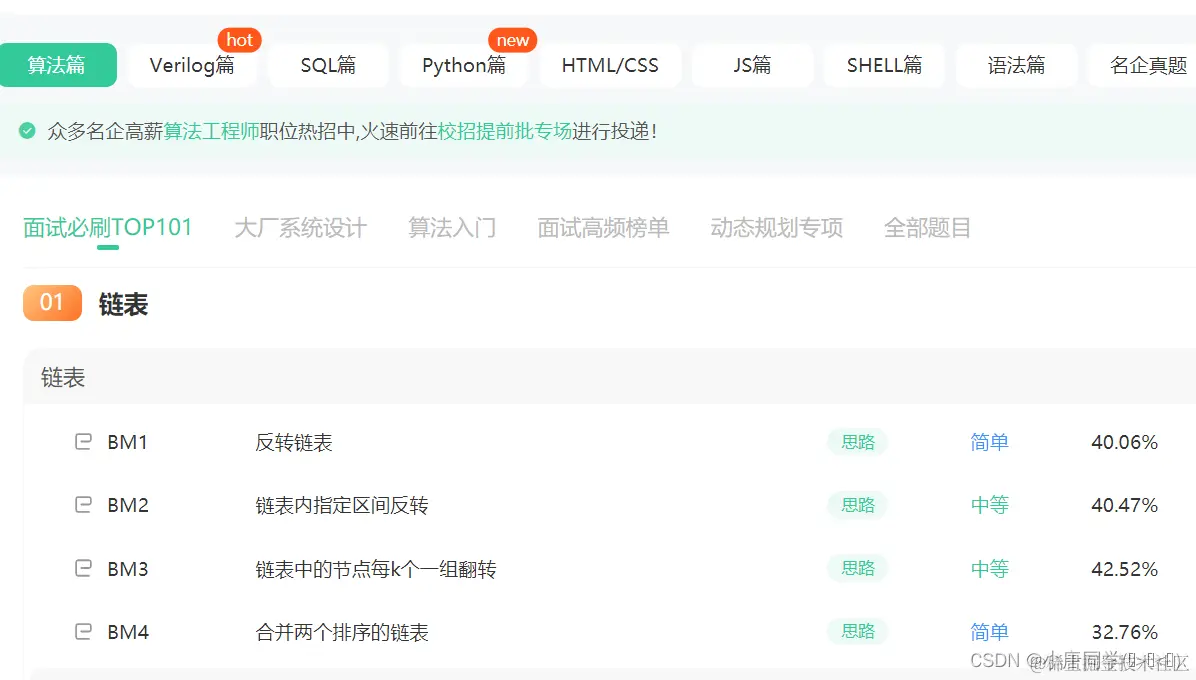 博友们如果也是新手入门数据结构我希望大家可以多加练习 数据结构题库在牛客网就有已经给大家附上链接,可以直接点击跳转:刷题点这里