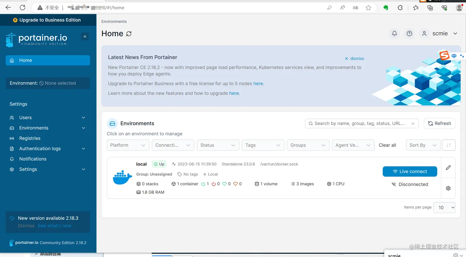 sudo docker run -d -p 8000:8000 -p 9000:9000 --name portainer --restart always -v /var/run/docker.sock:/var/run/docker.sock -v portainer_data:/data portainer/portainer-ce出现以下界面说明安装成功了