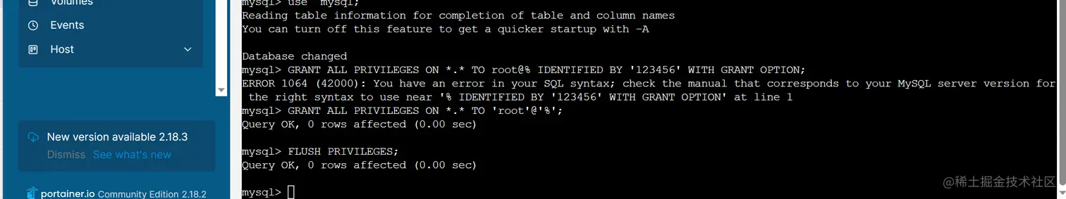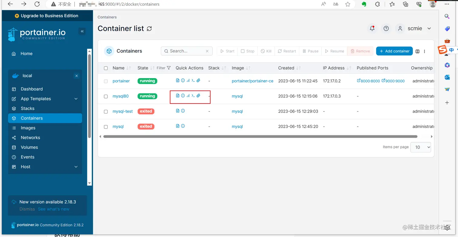 进入portainer界面mysql的console界面