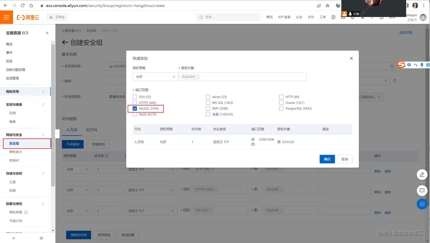 阿里云安全组放行3306端口