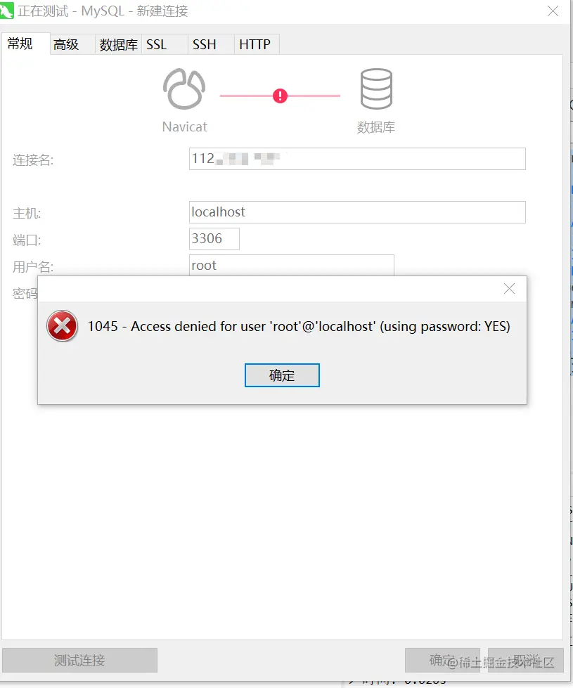 使用navicat连接服务器的mysql这时会出现错误