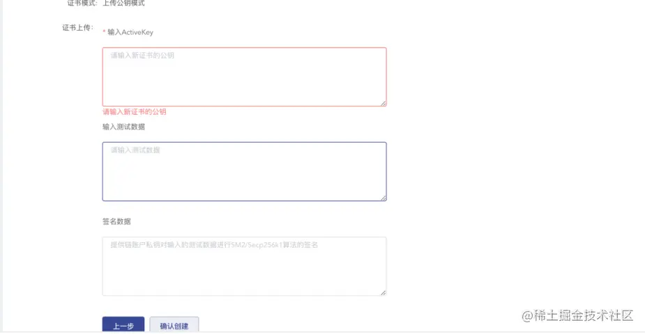 在ActiveKey中输入生成的公钥,并点击确认创建,即可完成创建。(注:公私钥也可以点击在线生成按钮下载保存)