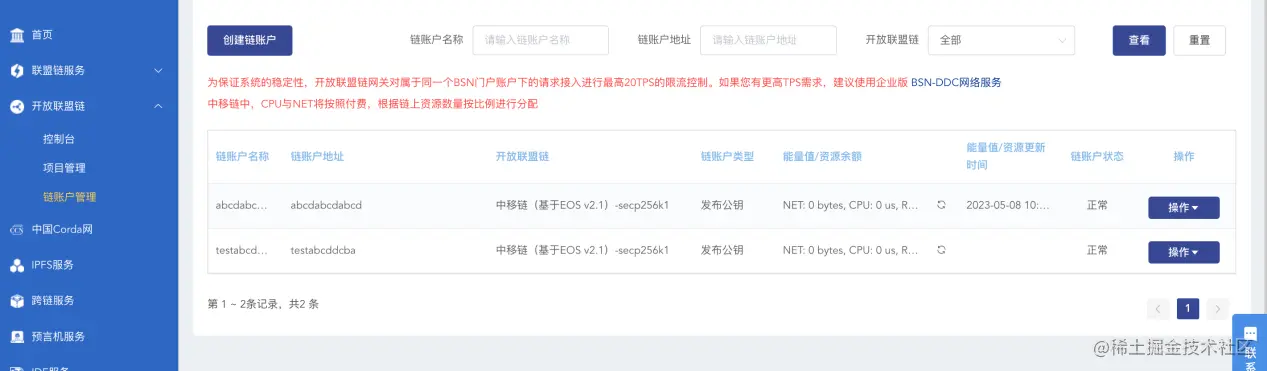 创建完成后,可以在链账户管理中看到创建的链账户。