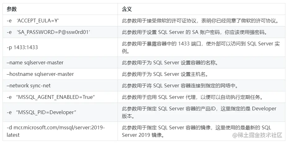 注意:这里我这里使用了开发版的 SQL Server 镜像,如果你在生产环境中使用 SQL Server,请使用适当版本的镜像,并根据需要进行调整。