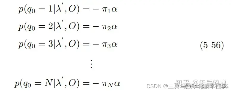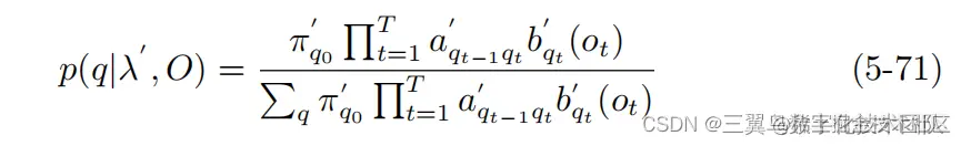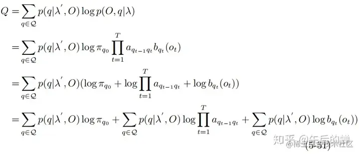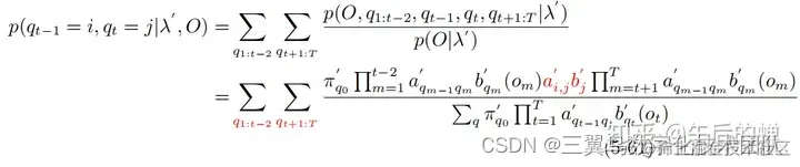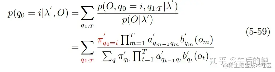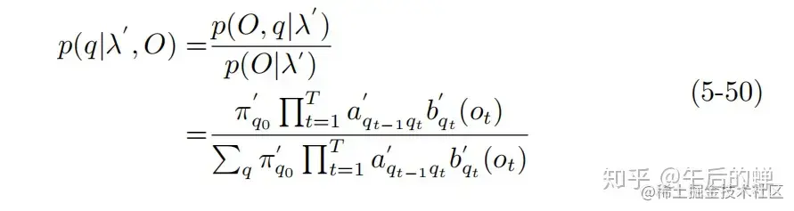 当知道前一时刻的参数 λ′ 和观测数据 O, 对于指定的任意一个隐变量序列 q, 很容易求出概率 p(q|λ′, O):