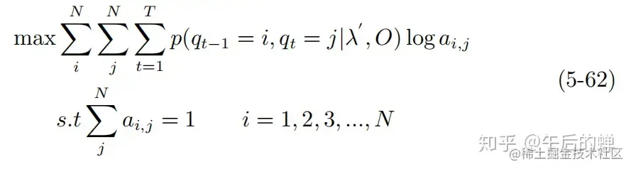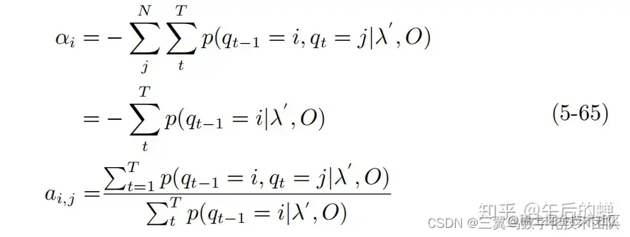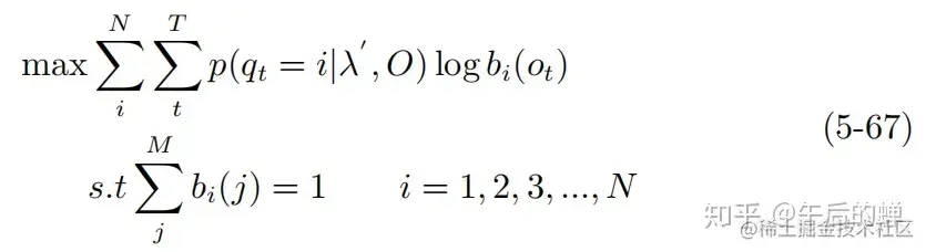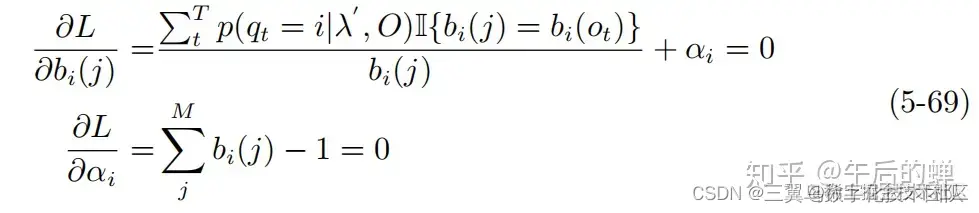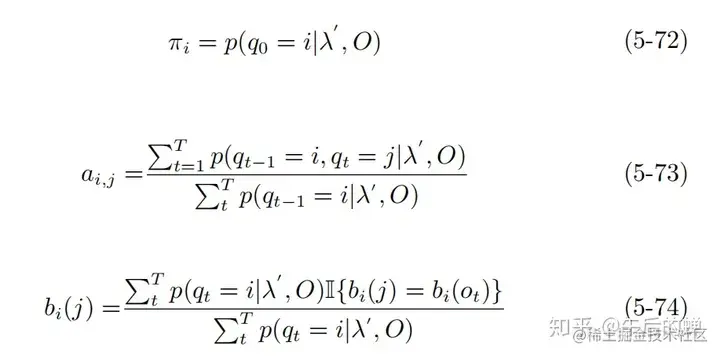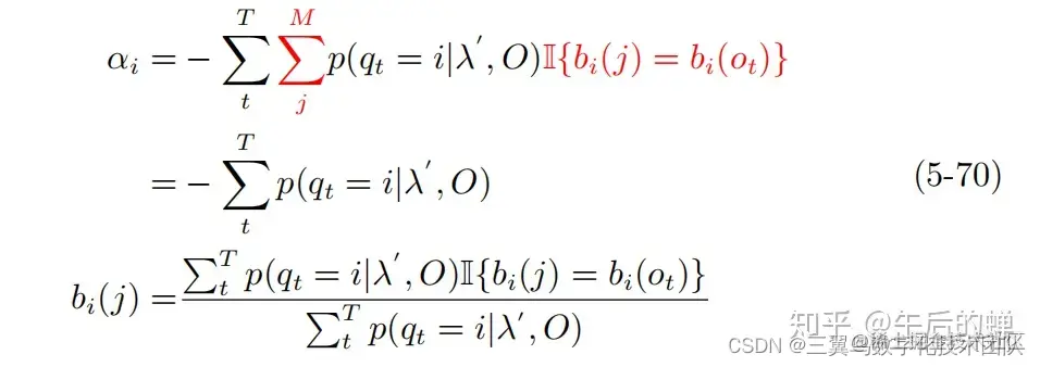 的最终表达式。至此我们求解出参数 B 。然后我们通过 EM 算法不断的迭代,直到算法收敛,HMM 的所有参数 λ = {A, B, π} 将全部求解出来。