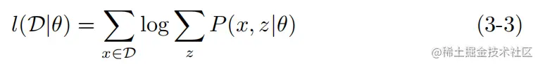 当 MLE 遇到带有隐变量 z( z∈ ) 的数据集 D 时,优化问题转化为如下形式: