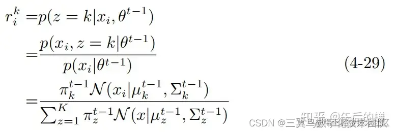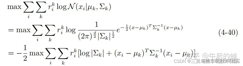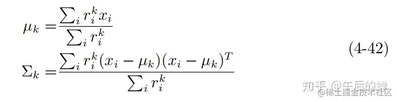 的求解过程对应 Kmeans 算法的“计算每个样本所属的类别”,EM 算法的 M 步,即式 4-45 中