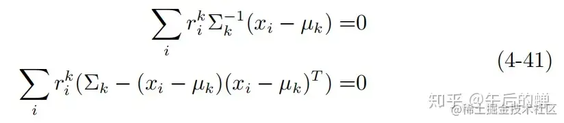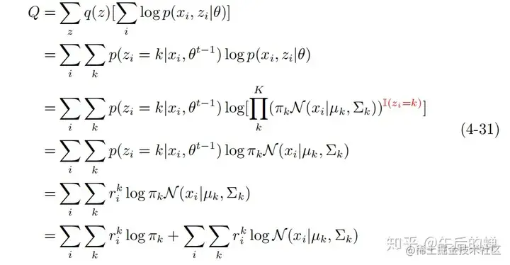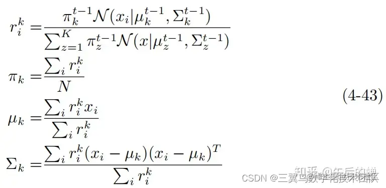 在式 4-43 中,包含和 E 步和 M 步,每次新求的参数用于下次迭代。