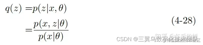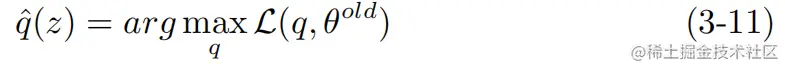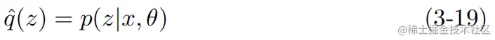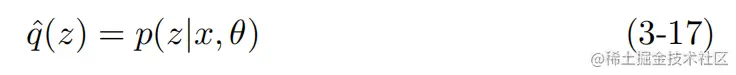 式 3-10 将最大化 ELBO 转化为两个子问题。第一个子问题,在 θ 固定的情况下,寻找一个 q(z) 使 最大,这步这称作 Expectation Step,即 E 步: