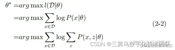 在介绍 EM 算法前,把式 2-2 中的 log-likelihood 提取出来: