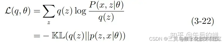 在有的文献中,会看到 , 其实这种表述与式 3-19 等价。若将 ELBO 直接看成散度: