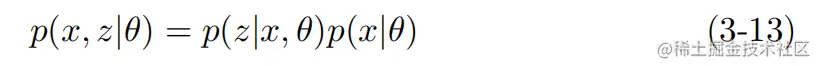 我们知道求解如式 3-4 这种 logsum 的形式比较困难,但求解式 3-7 这种 sumlog 的形式相对容易些。所以我们不再直接求解 log p(x|θ), 而是通过最大化 , 近似最大化 log p(x|θ) 的值。这样优化问题也由原来: