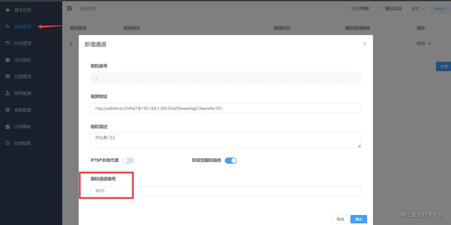 4)再点击通道管理,编辑通道,将通道的国标通道编号填写成EasyCVR平台上要绑定的设备通道。