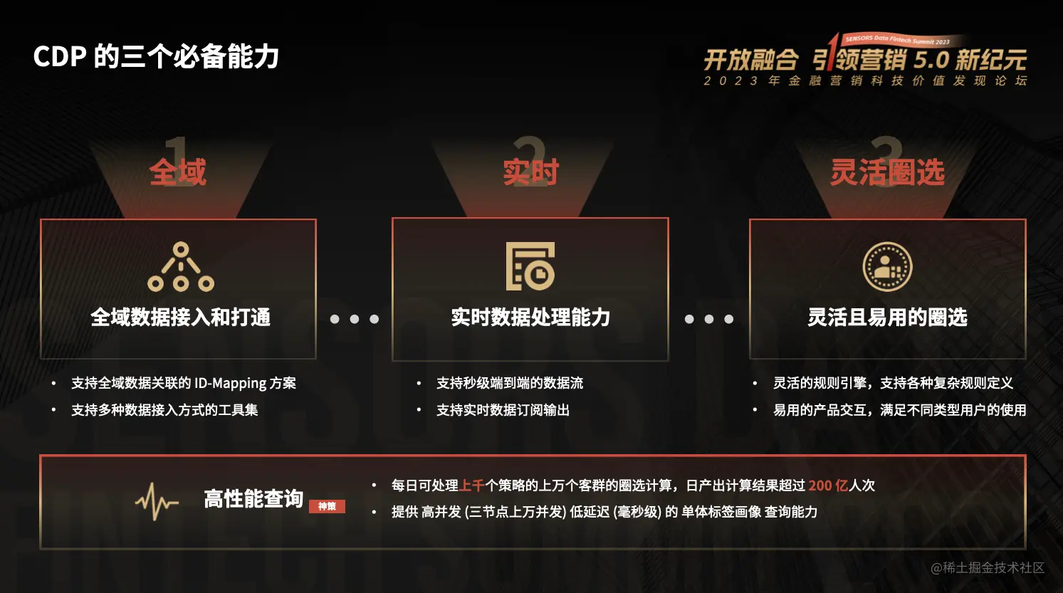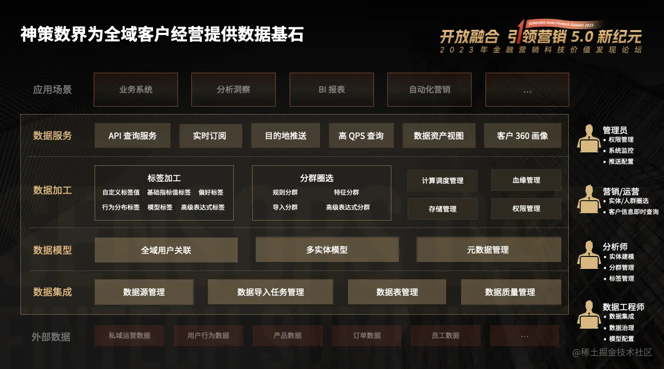 在「开放融合,引领营销 5.0 新纪元——暨 2023 年金融营销科技价值发现论坛」现场,神策数据创始人 & CEO 桑文锋发表了《双引擎赋能数字化客户经营》的主题演讲,围绕“用户/客户数据平台”和“旅程编排引擎”双引擎做了详细介绍。