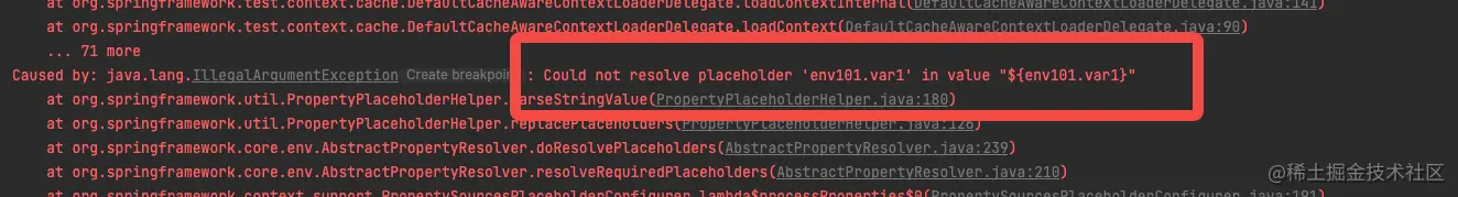 只要在变量上加注解 @Value("${env101.var1}")就可以了,@Value 注解会自动将配置文件中的env101.var1属性值注入到var1字段中,跑个单元测试看一下结果。