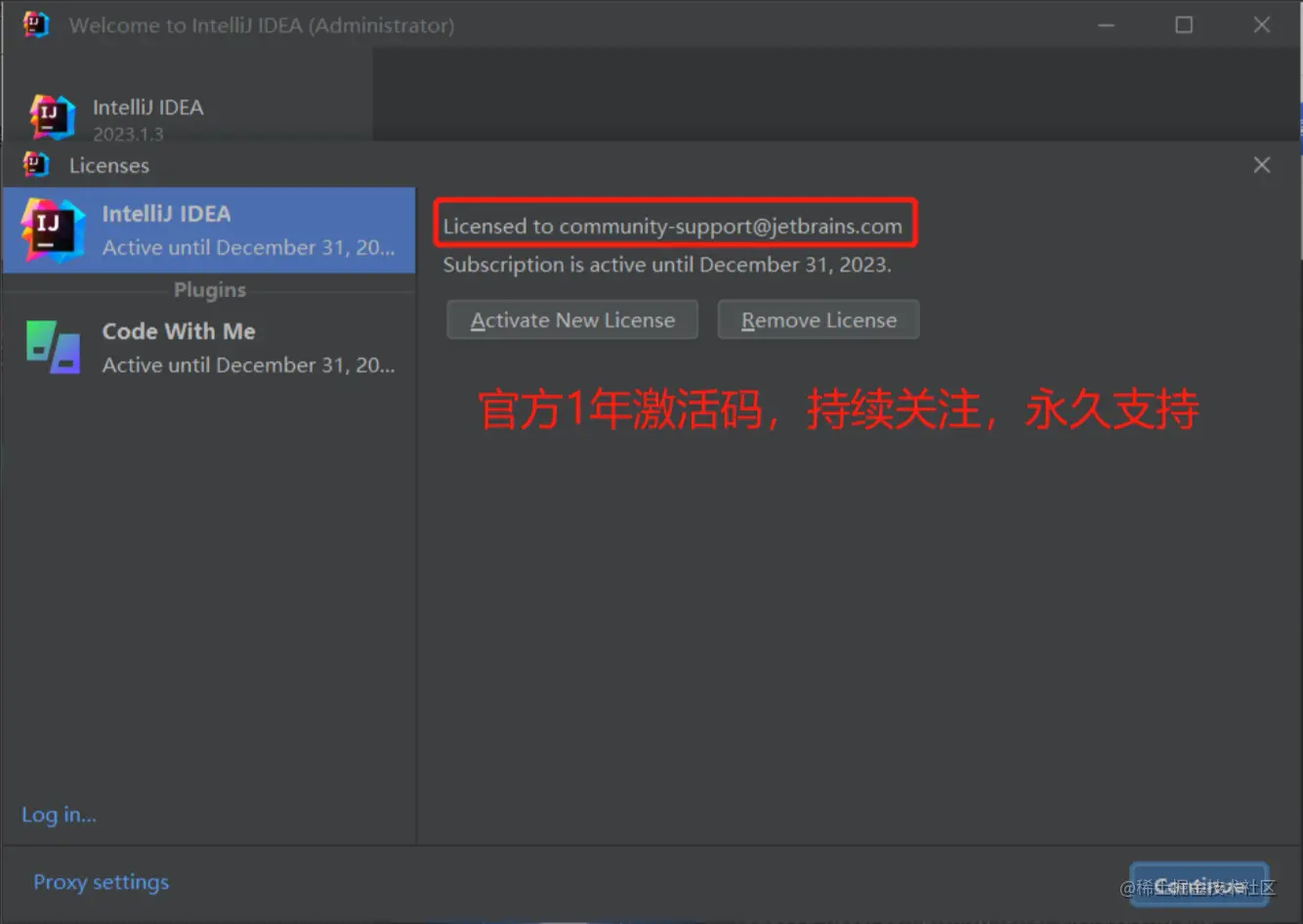 - 重新打开IntelliJ IDEA,输入激活码即可