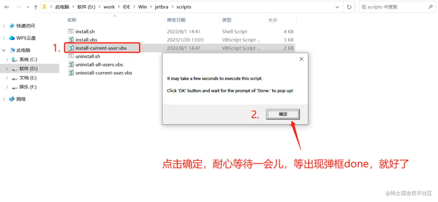 - 然后再执行install-current-user.vbs,直接双击打开即可