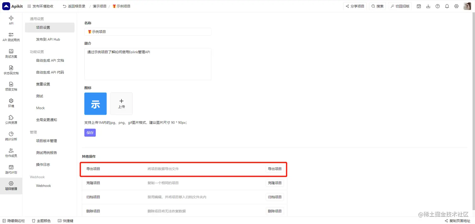 Eolink Apikit 项目数据 和Eolink Apikit API相关数据的差异在于,前者出来包含API相关数据外额外包含了状态码、项目文档、环境、数据结构等项目级公共数据,后者仅支持API文档、测试用例、高级Mock等数据。
