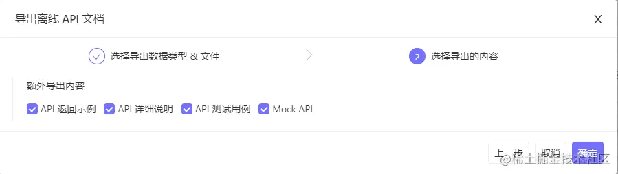 4)额外导出内容:可以筛选API返回示例和API详细说明等信息 (execl和Swagger不支持该选项)