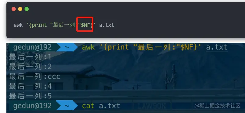 - 注:AWK中的变量有三种类型,除了有用户定义的变量还有内置变量,还有字段变量,其中内置变量是需要全部大写的