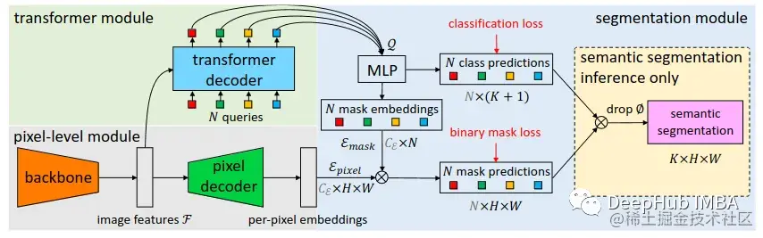 大多数传统的计算机视觉模型将语义分割和实例分割视为独立的问题,需要不同的模型、损失函数和训练过程。但是MaskFormer设计了一个统一的方式处理这两个任务:它通过预测图像中每个对象实例的类标签和二进制掩码来工作。这种方法本质上结合了语义和实例分割的各个方面。对于损失函数,MaskFormer使用统一的损失函数来处理这个掩码分类问题。这个损失函数以一种与语义和实例分割任务一致的方式评估预测掩码的质量。所以使用相同的损失函数和训练过程得到的的MaskFormer模型可以不做任何修改地同时应用于语义和实例分割任务。