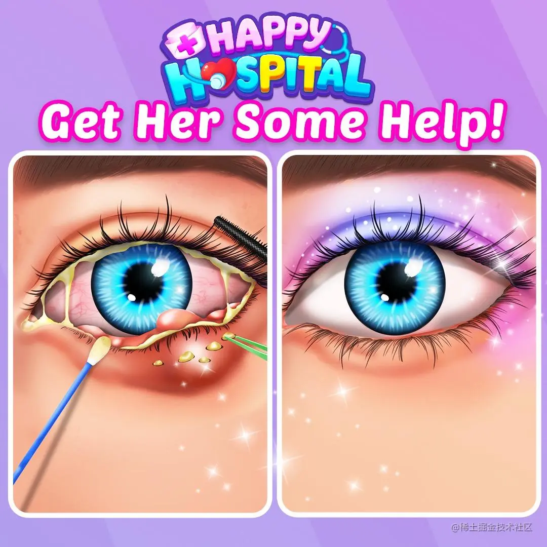 值得一提的是,这类“美容”玩法与医疗玩法比较接近,因此也被模拟经营手游【Happy Hospital: Doctor ASMR】收录其中,成为游戏主要的副玩法。根据广大大抓取到的热门在投素材,可以看出其推广思路也是借助“美容”玩法吸引玩家,再依靠模拟经营玩法沉淀玩家和创造收入。