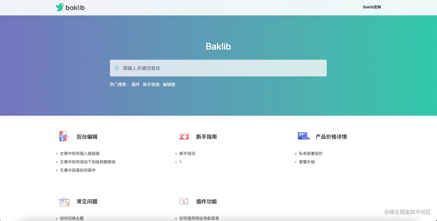 Baklib平台可以为企业内部员工提供一个搜索功能和高效的知识库,从而对知识进行共享和传递。此外,Baklib还提供了一些API接口,可以方便地将知识库嵌入到公司网站中,实现其与外部客户的交互。