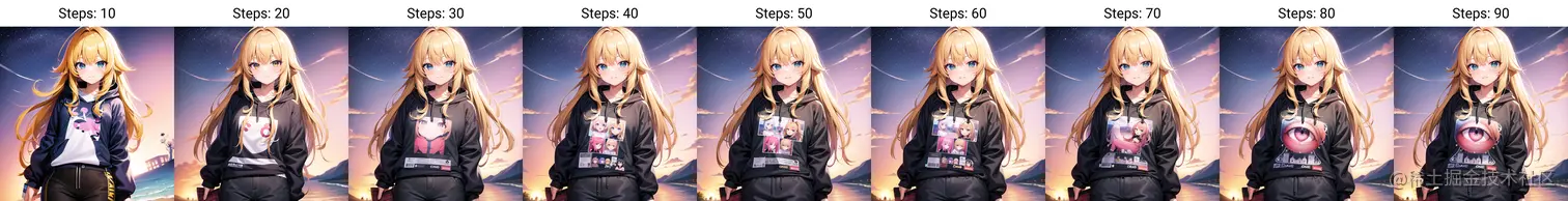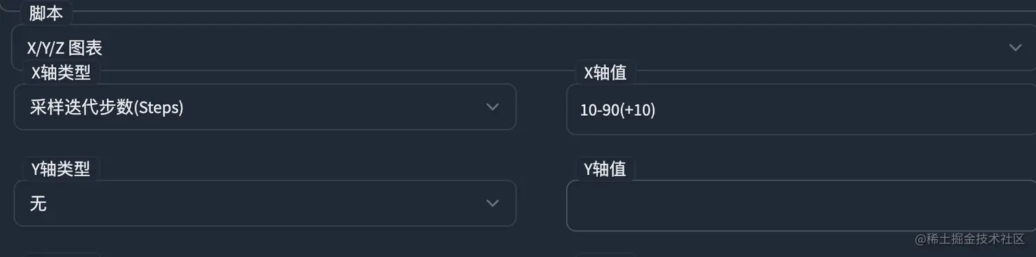 举个例子: 我们想要在同一模型下,比较不同迭代步数(10-90)对出图的影响,跨度步数为10,每10步出一张图,那我们就可以这样填