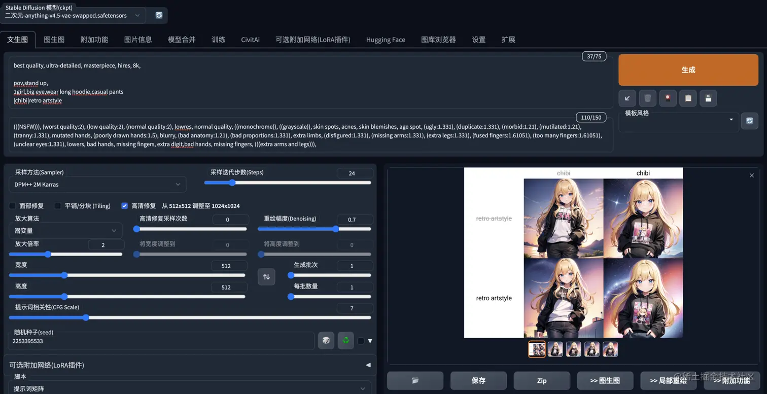 比如:我们想要比较 复古风格和Q版风格 对现有 prompt 的影响,那么我们就可以根据以下步骤操作