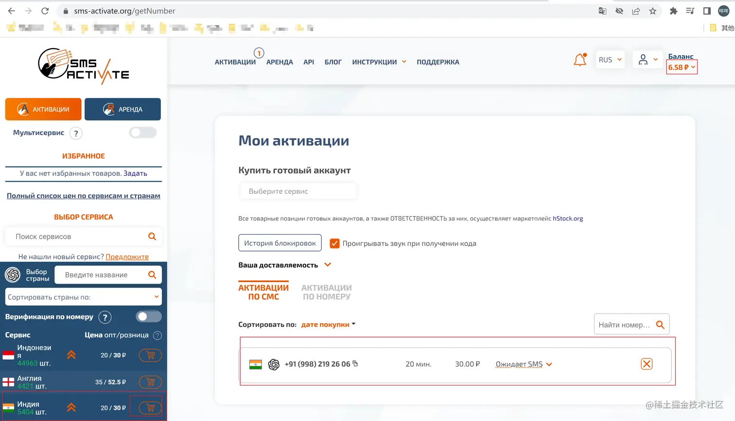 看你想买哪个地区的虚拟号,印度这个也涨价了。如果大家在这里没收到验证码,没关系,在20分钟之内,有效期之内点X,都是能退的,我第一次收验证码也没成功。