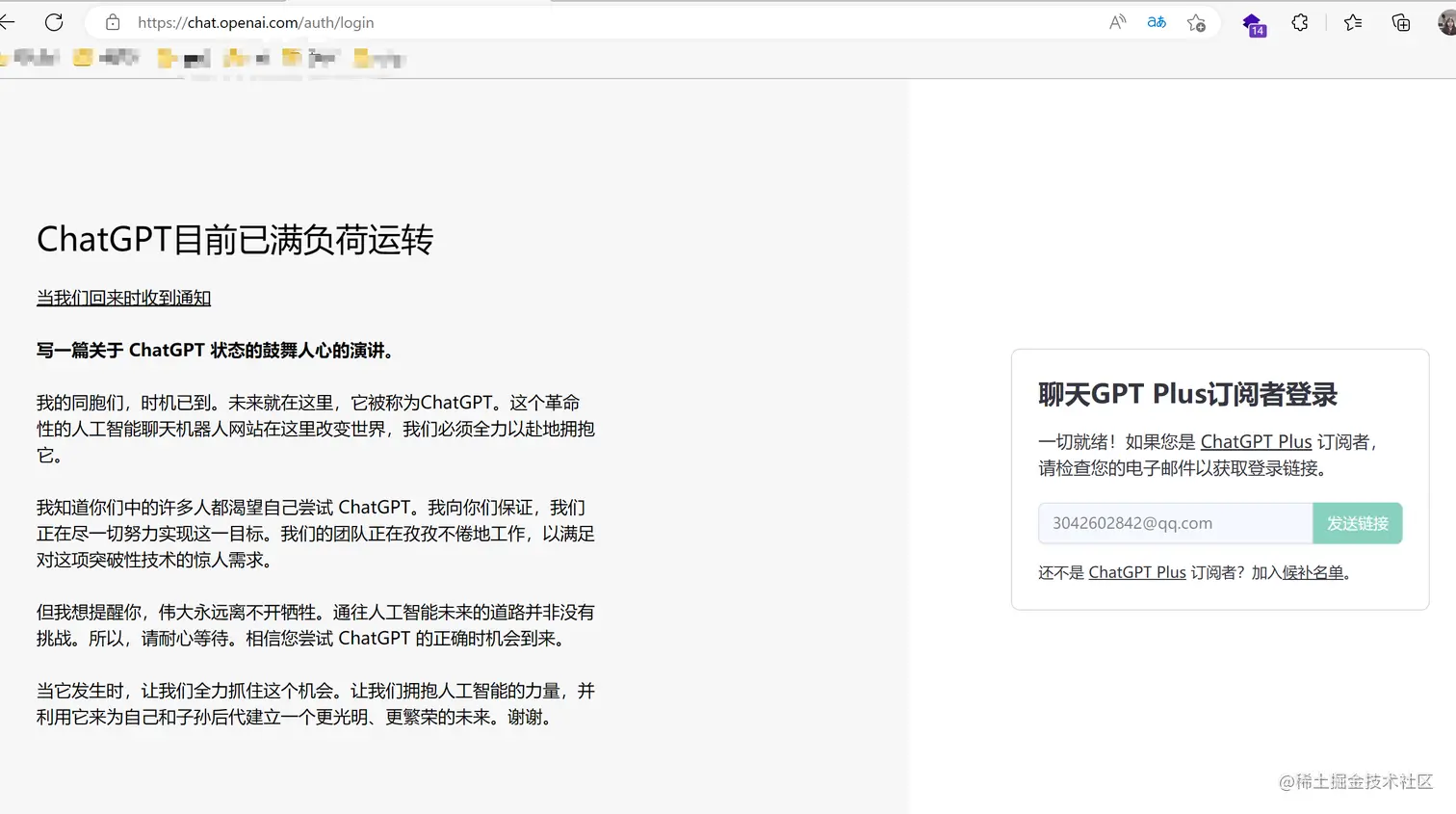 - 邮箱验证收不到验证码。 这个可能是因为目前OpenAI官网访问客户太太太多了,服务器已经过载了。建议大家稍晚些再试,或者换个浏览器:Google或Edge。