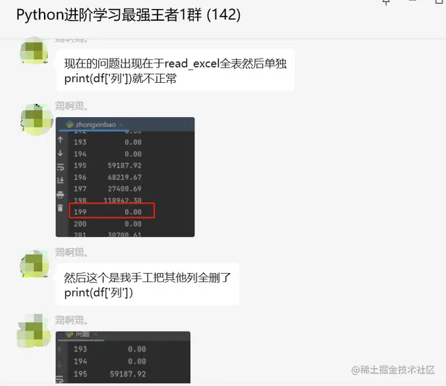 现在的问题出现在于read_excel全表,然后单独 print(df['列'])就不正常。
