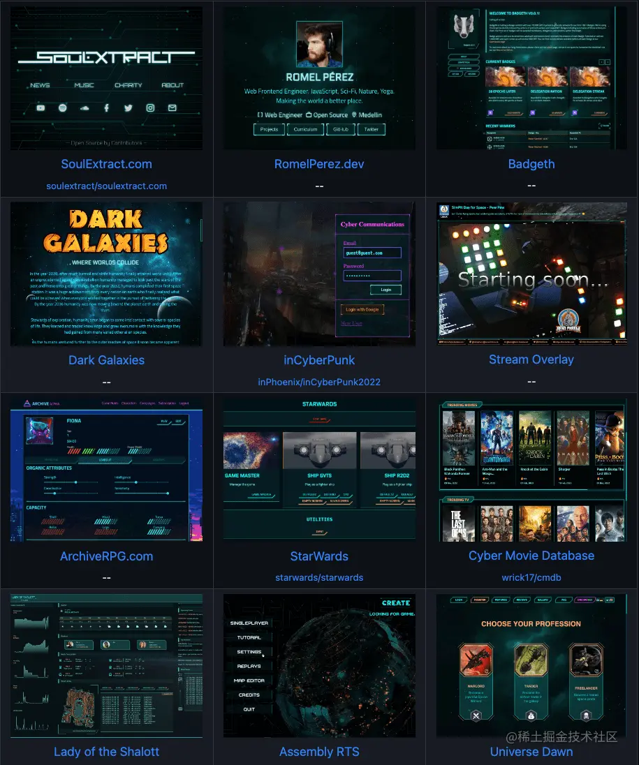arwes 是个科技感十足的 UI 框架,它基于未来科幻设计、动画和音效构建用户界面。arwes 受到了 Cyberprep 和 Synthwave 等影响,并借鉴了《星际公民》、《光环》和《创:战纪》等作品。