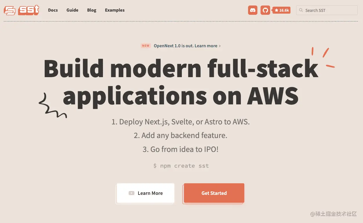 sst 让你在 AWS 上一站式拉起全栈应用,在 AWS 上装上 Next.js、Svelte、Astro 任意一款,再用它们提供的后端组件扩展下应用,你就得到了一个 serverless 应用。