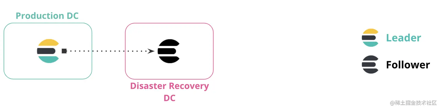 让我们仔细看看前面提到的用例之一:灾难恢复。 在此场景中,你可能有一个主集群位于一个数据中心,而一个辅助集群位于另一个数据中心。 要设置复制,你需要在辅助集群上定义一个跟随者索引,指定远程集群和领导者索引模式: