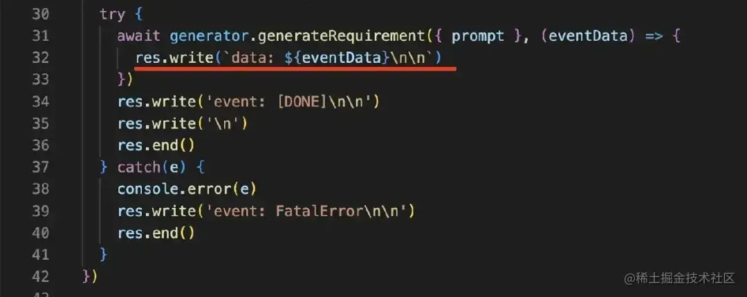 在写数据时,结尾必须遵循 data: ${message} \n\n的格式,客户端才可以正常接收。
