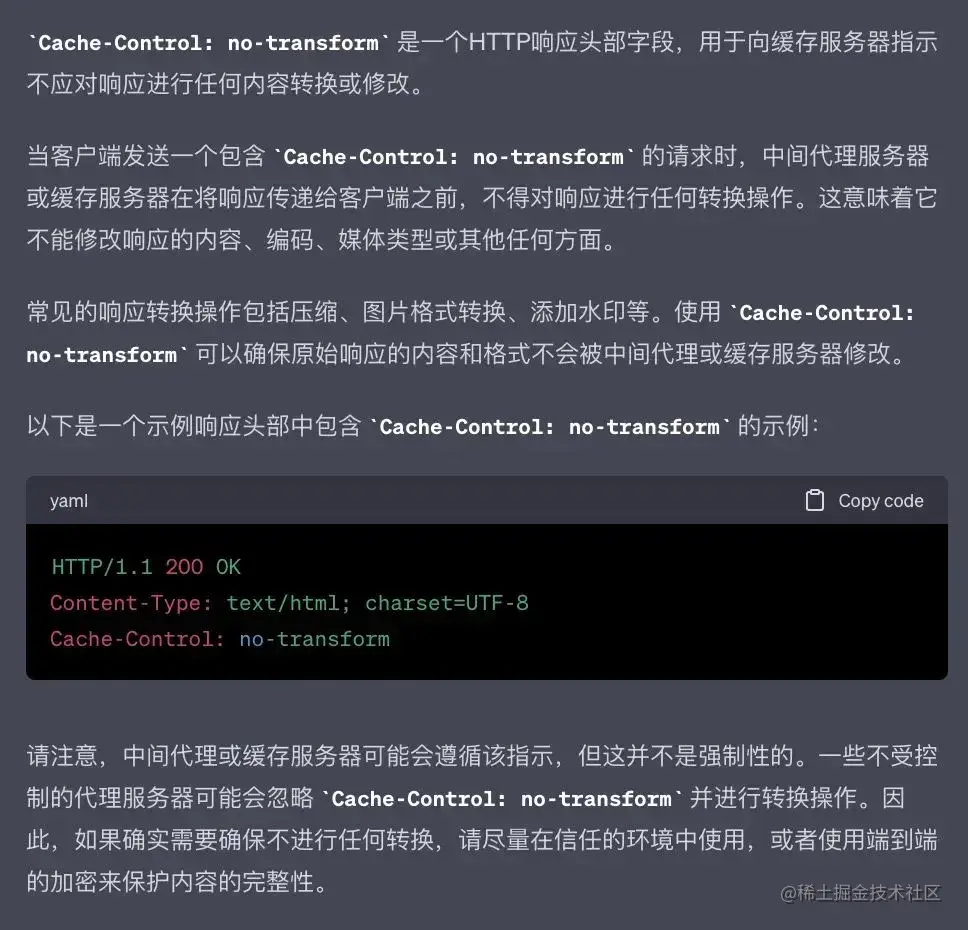 在开发阶段如果遇到内容并不是持续顺畅地输出时,请检查 Cache-Control 的 no-transform 字段是否有配置,有可能是你本地的 Proxy 导致响应内容无法持续传输到客户端。