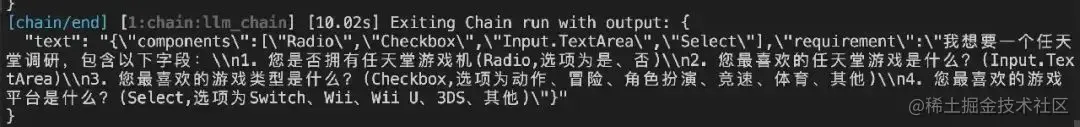 最终 AI 的生成格式也是按照我们的格式进行的输出。大致如下:“标题(组件,[选项])”。