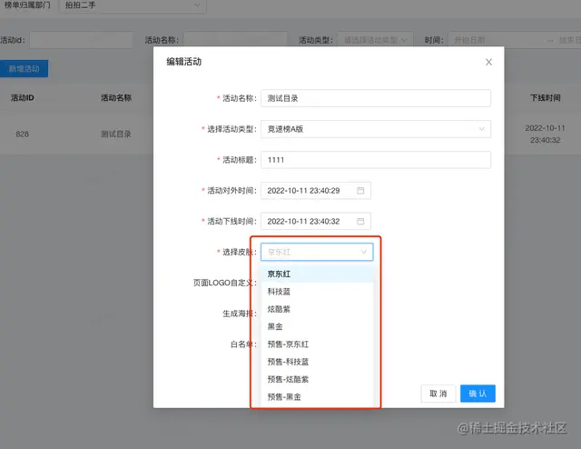 首先新增页面配置后台,使用户可以选择想要的皮肤。