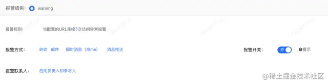 新增ump监控,每分钟会去访问页面链接的连通性,判断页面是否返回除了200、301、302的异常状态码,如果连续3次页面访问异常。如返回异常状态码,则通过公司内部聊天工具咚咚、邮件等方式进行消息推送。