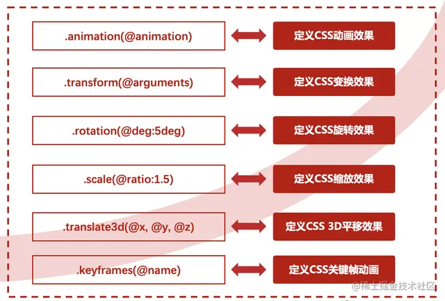 CSS样式兼容性的作用是确保网页在不同浏览器和设备上都能够正确地显示和呈现,提高网页的兼容性和可访问性。可以定义了一些CSS动画和过渡效果的Mixin,在其他Less文件中引用这些Mixin来快速定义CSS动画和过渡效果。CSS动画兼容性用mixin写法的好处是可以提高CSS代码的可重用性和可维护性,同时保证在不同浏览器中的兼容性。具体mixin可参考下面写法。主要分为6种效果,animation 动画效果,transform 变换效果,rotation 旋转效果、scale 缩放效果、translate3d 平移效果、keyframes 关键帧动画。