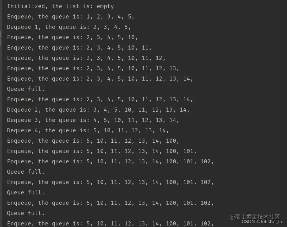 (2)队空:front = rear 这里的队满判断是牺牲了一个空间,还有其他方式也是可以判断队满的。