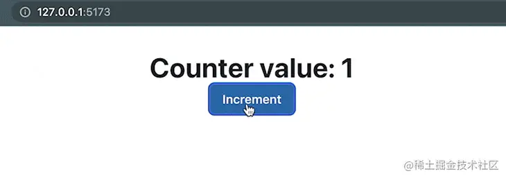 当我们单击按钮时,可以看到计数器值已正确更新。因此,设置按预期工作: