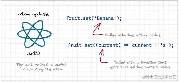 为了更新 Atom,使用 set 函数,如下所示: