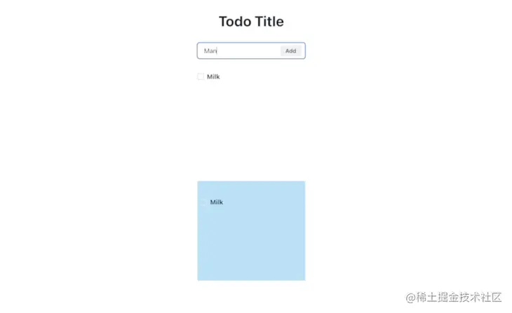 在 Title 下方,可以将 input box 与button一起使用,您可以使用它向列表中添加项目。使用 Chakra UI,标题的代码以及输入框如下所示: